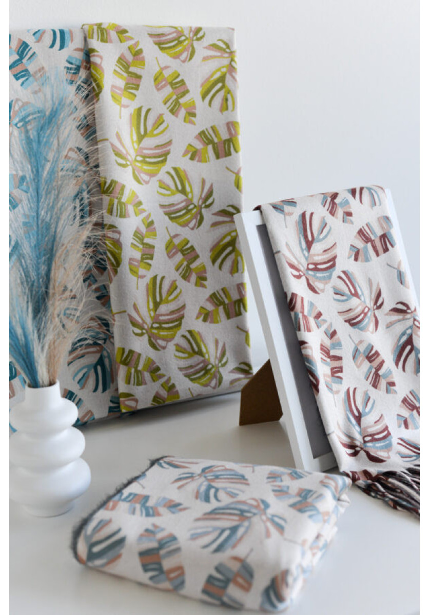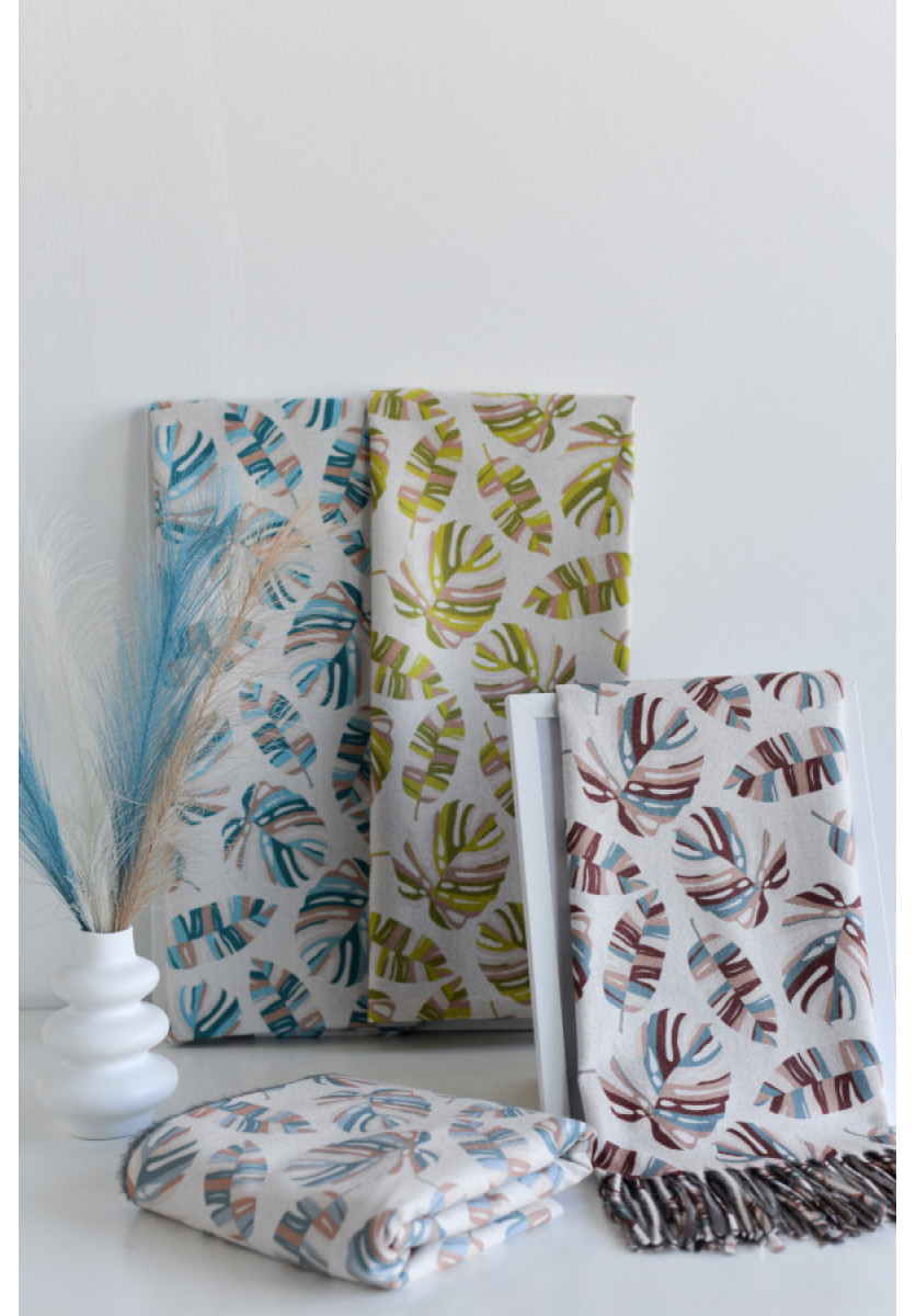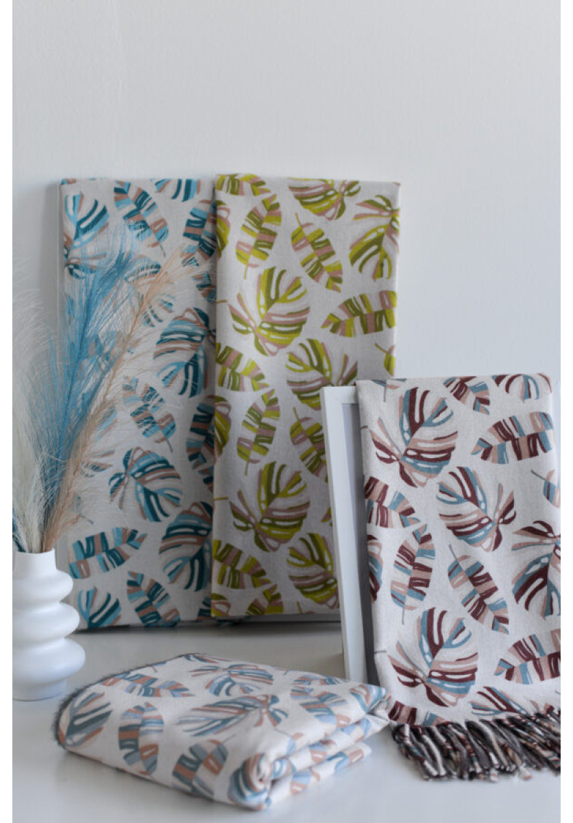 Pashmina reversible diseñada con estampado de hojas en una de sus partes y por el otro lado en color liso.