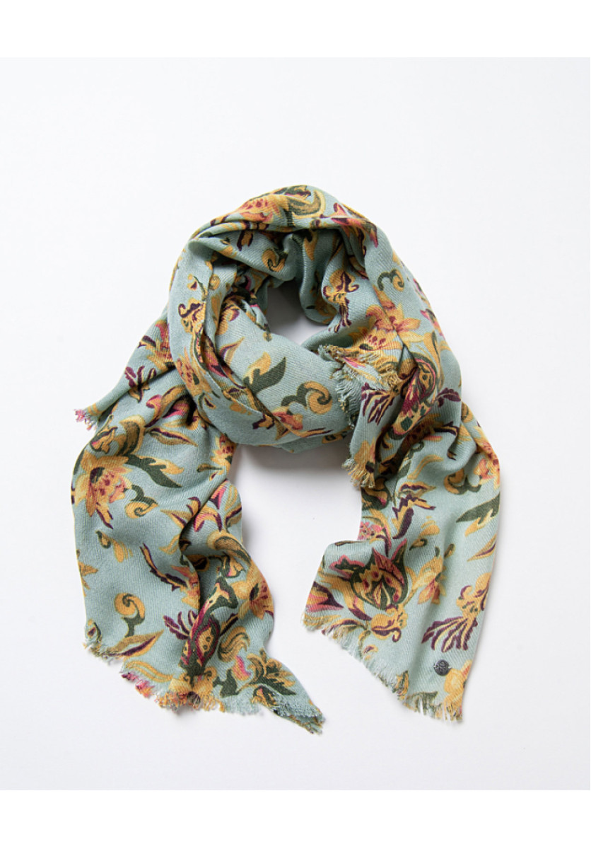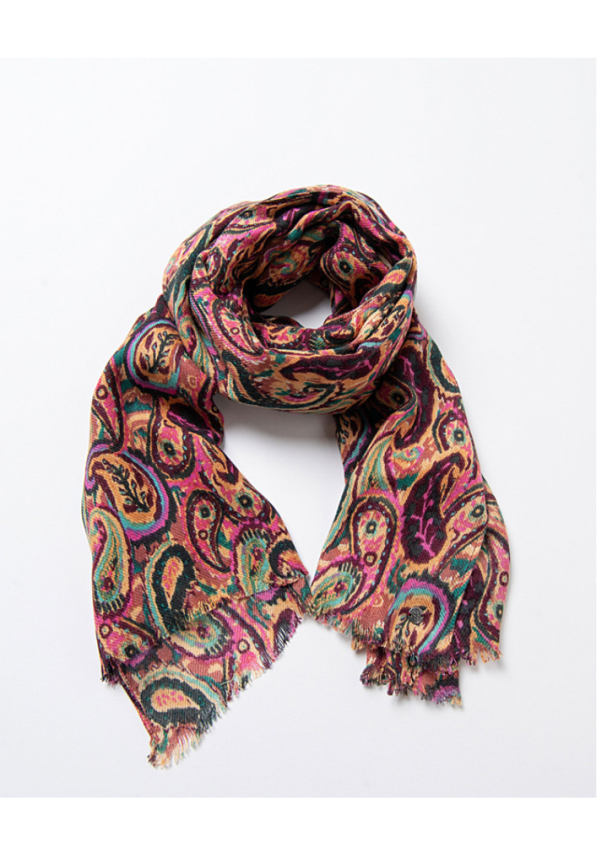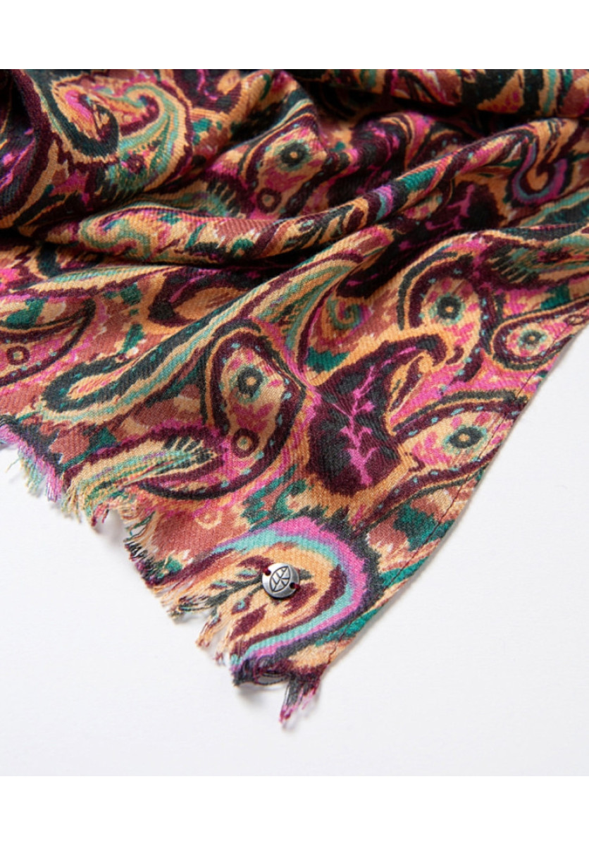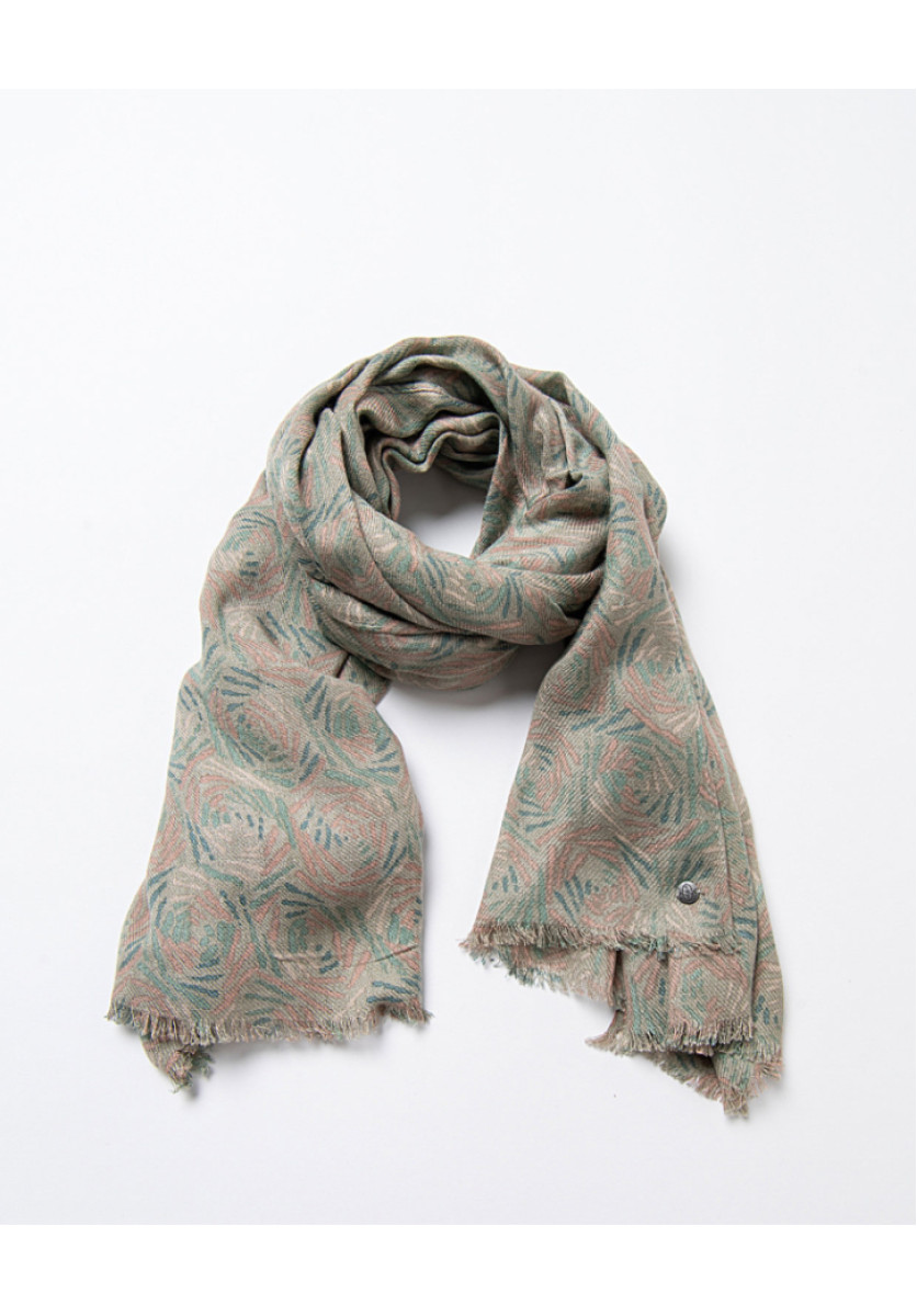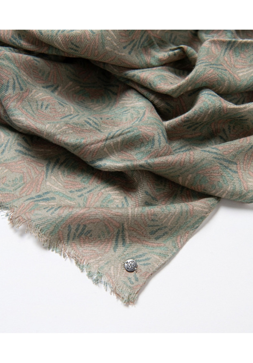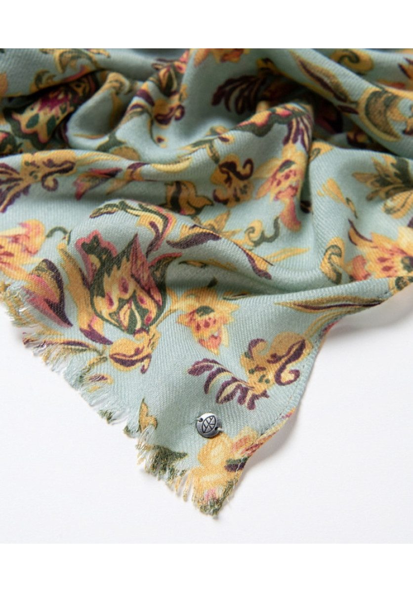 Pañuelo estampado confeccionado en una suave mezcla de lana y viscosa. Su textura ligera y agradable al tacto lo convierte en un accesorio ideal para los meses fríos, aportando calidez sin peso. Rematado con mini flecos para un acabado delicado y elegante.