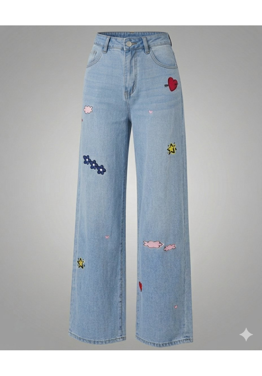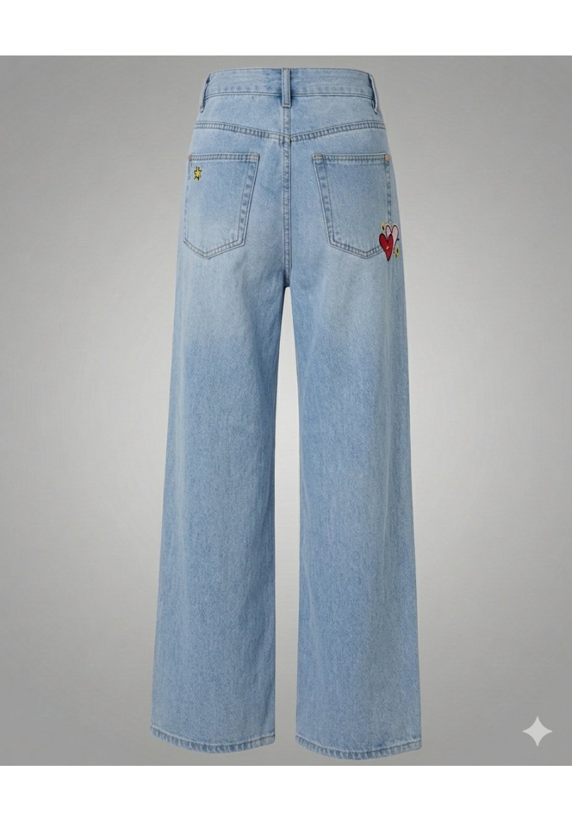 Pantalones de pierna ancha "Edición Artística", una prenda que fusiona la esencia del denim clásico con un espíritu creativo y vanguardista. Estos pantalones reinterpretan la tendencia urbana mediante bordados hechos a mano, convirtiendo una prenda de diario en una auténtica declaración de originalidad y frescura.