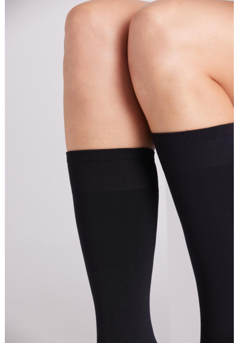 Mini media 70 DEN. Confeccionado con puño ancho confort antipresión que ofrece sujeción sin opresión.