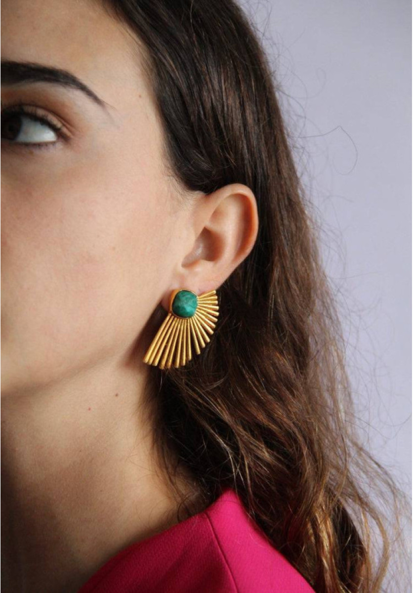 Son unos pendientes exclusivos compuestos por una piedra cuadrada y unas tiras doradas.