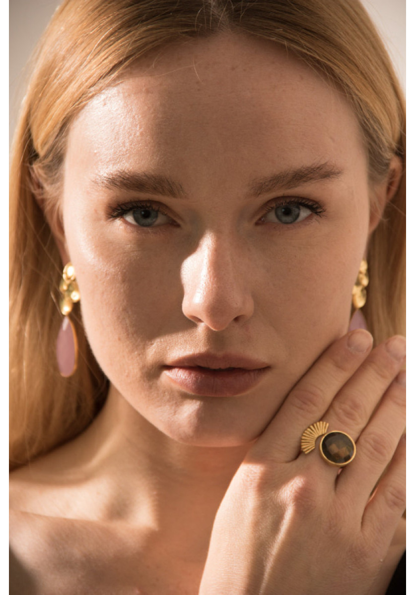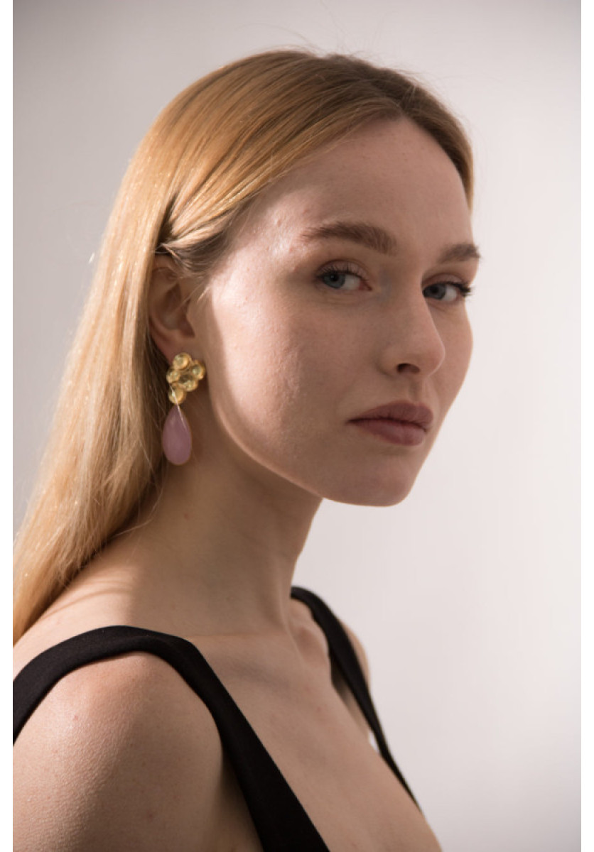 Son unos pendientes de diseño y pueden ser desmontables quitando la piedra y quedando únicamente la parte dorada sobre la oreja