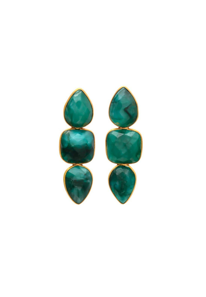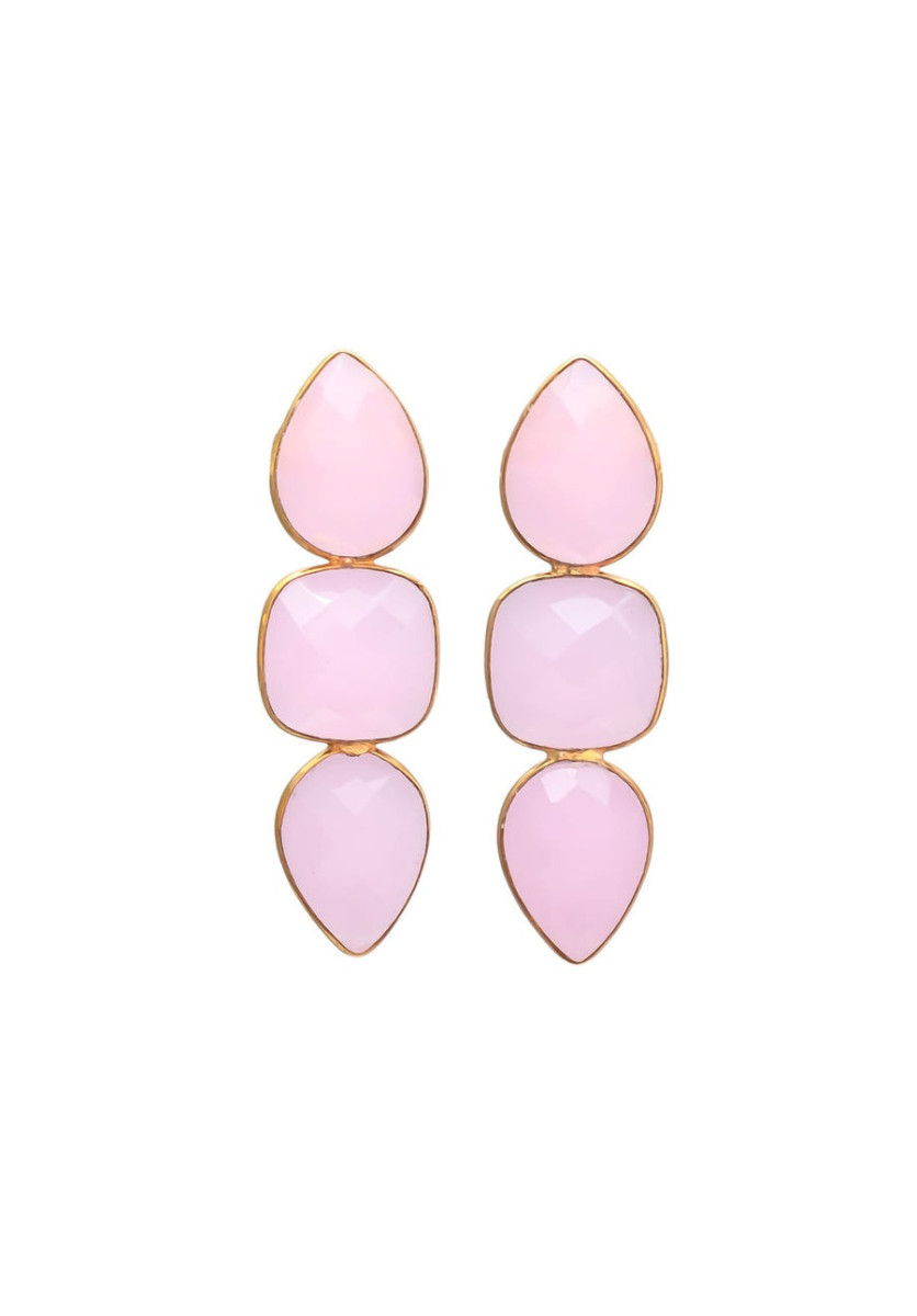 Pendientes de diseño con 3 piedras con formas diferentes y que están unidas ofreciendo un pendiente pegado a la oreja sin movimiento.