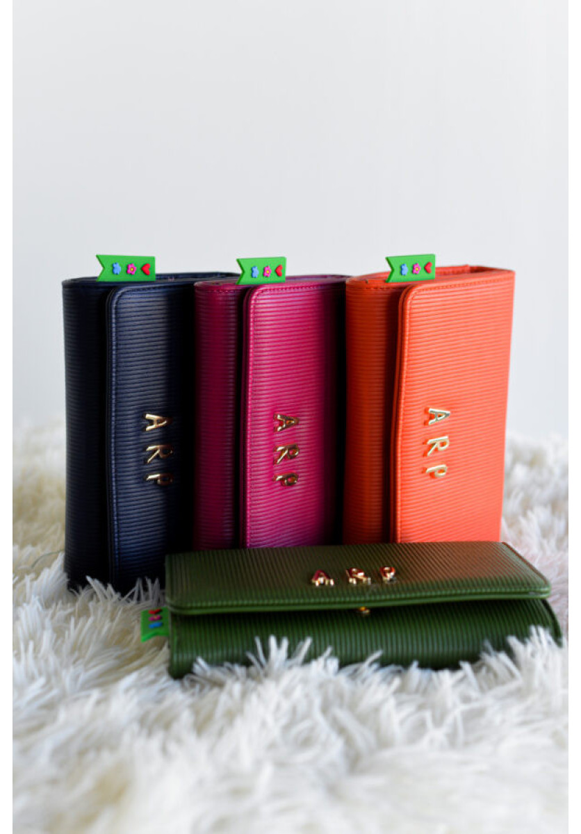 Este billetero con tapa combina elegancia y funcionalidad en un formato compacto y práctico. Confeccionado en piel vegana grabada en líneas verticales, ofrece un diseño sobrio pero con el toque distintivo de Agatha Ruiz de la Prada gracias a los detalles metálicos dorados.