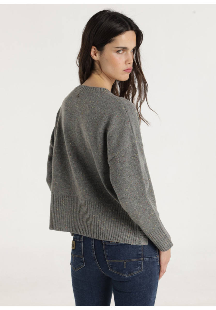El LOIS JEANS-INES-NASH es un jersey para mujer de la marca Lois, diseñado con un cuello caja y detalles de aberturas intarsia. Está confeccionado en una mezcla de materiales, lo que le proporciona una textura suave y cómoda. Su color gris lo hace versátil y fácil de combinar, ideal para un look casual y moderno.